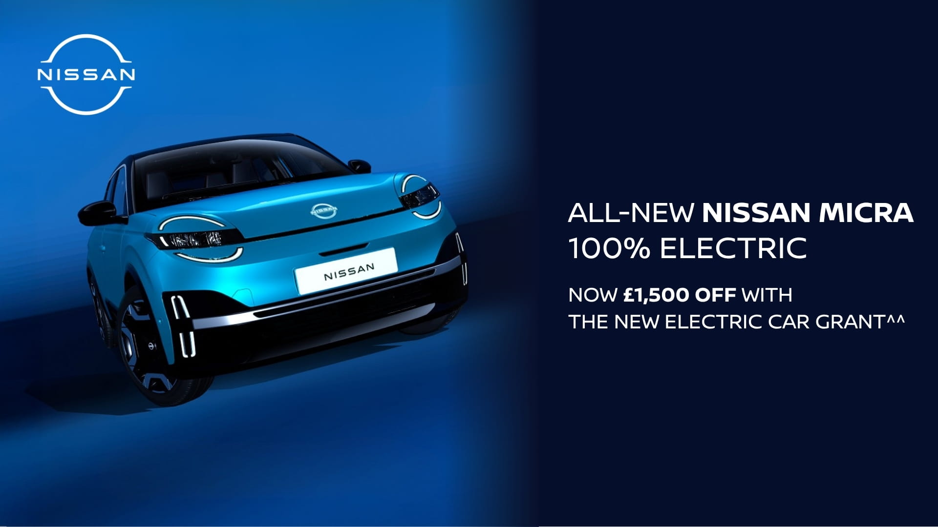 Exciting news - the all-new Nissan MICRA now comes with a £1,500 Government Electric Car Grant^^, making it the perfect time to go electric.