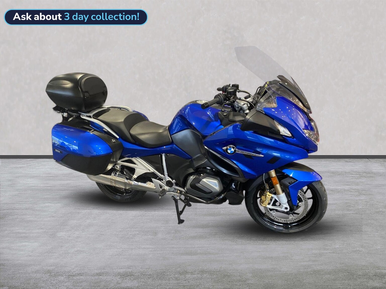 This is a really clean example and a credit to its previous 1 owner from new, comes fully ready to tour with panniers and top box, electric screen, shift assist pro, anti theft alarm , heated grips and seat and loads more features. The bike comes in the sport colour scheme in the striking racing blue metallic paint with matching colour panniers and black top box and a full BMW service history.